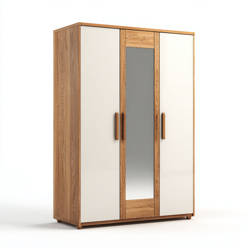 Armadio - legno-vetro - 158x58x200 cm - legno naturale-bianco - stile moderno